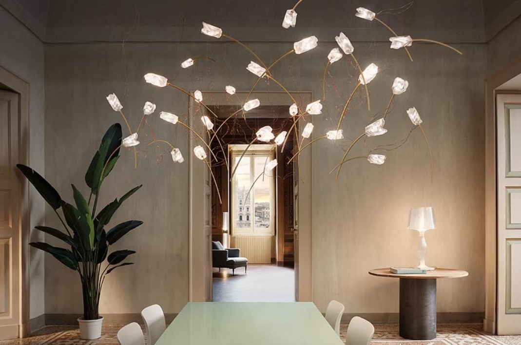 imaginative, elegant, weightless. Tulip literally adorns spaces with floating blossoms that have been hand molded according to Slamp’s methods, making each unique.